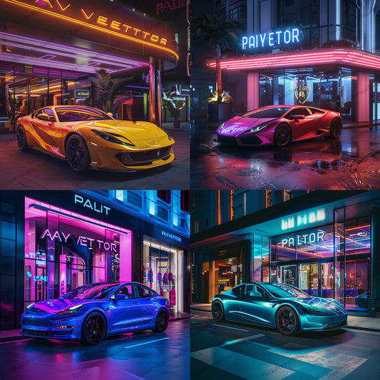 Futuristic Cars with Neon Lights AI MidJourney Image Prompt, 8670