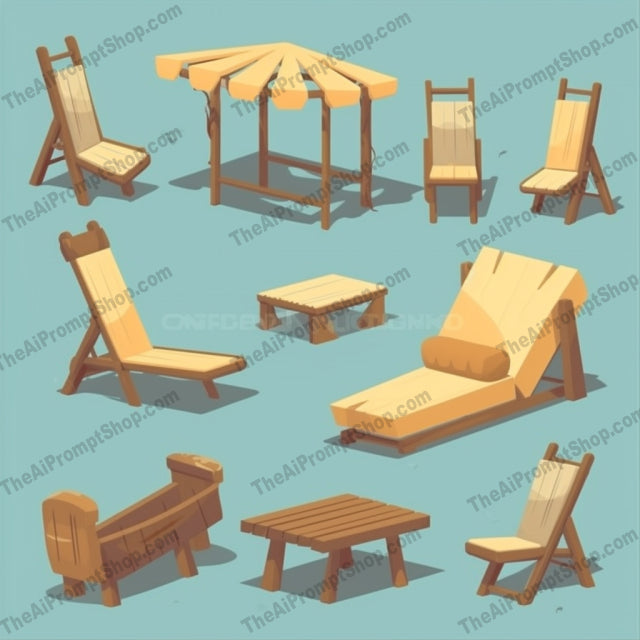 AI Midjourney Prompt for Isometrics - B188s - Beach Furniture Icons