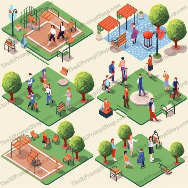 AI Midjourney Prompt for Game Assets - B242s - Isometric Icons for Park Friends