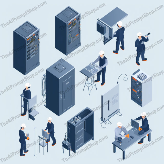 AI Midjourney Prompt for Isometrics - B46s - Electricians at Work